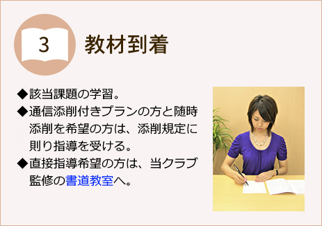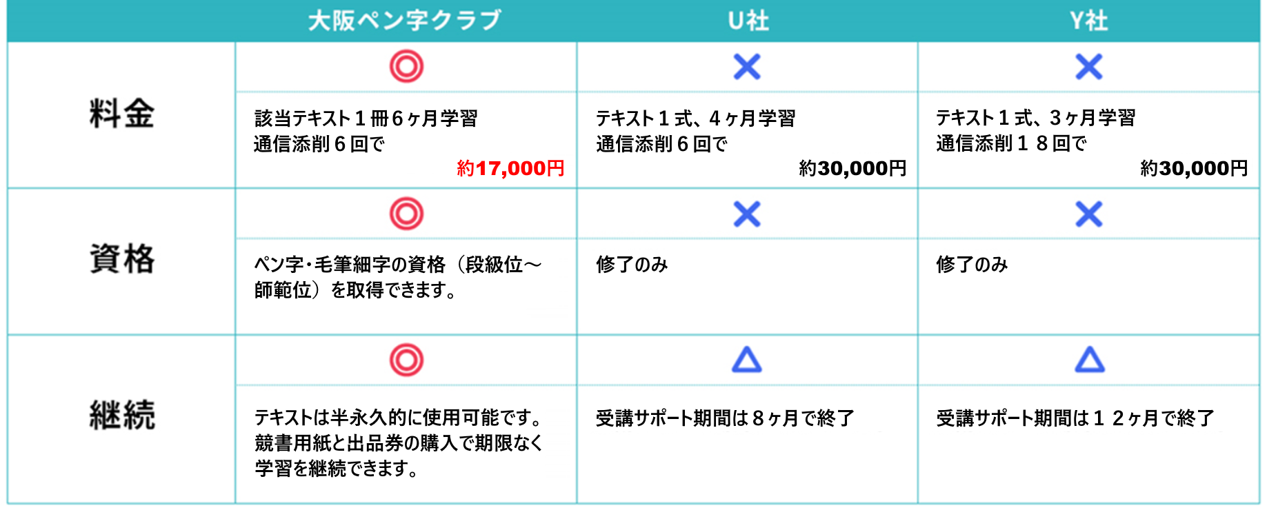 独学では成果が上がらないけれど、教室に通うこともできないという方は、一度お試しください。書かれた字に対してコメントがあるのは大きいことかも知れません。ただし、通信添削指導は字形の修正がメインで、リズム・速度・筆圧ほか、通信では伝えることが困難なこともあるため、過度な期待は禁物です。