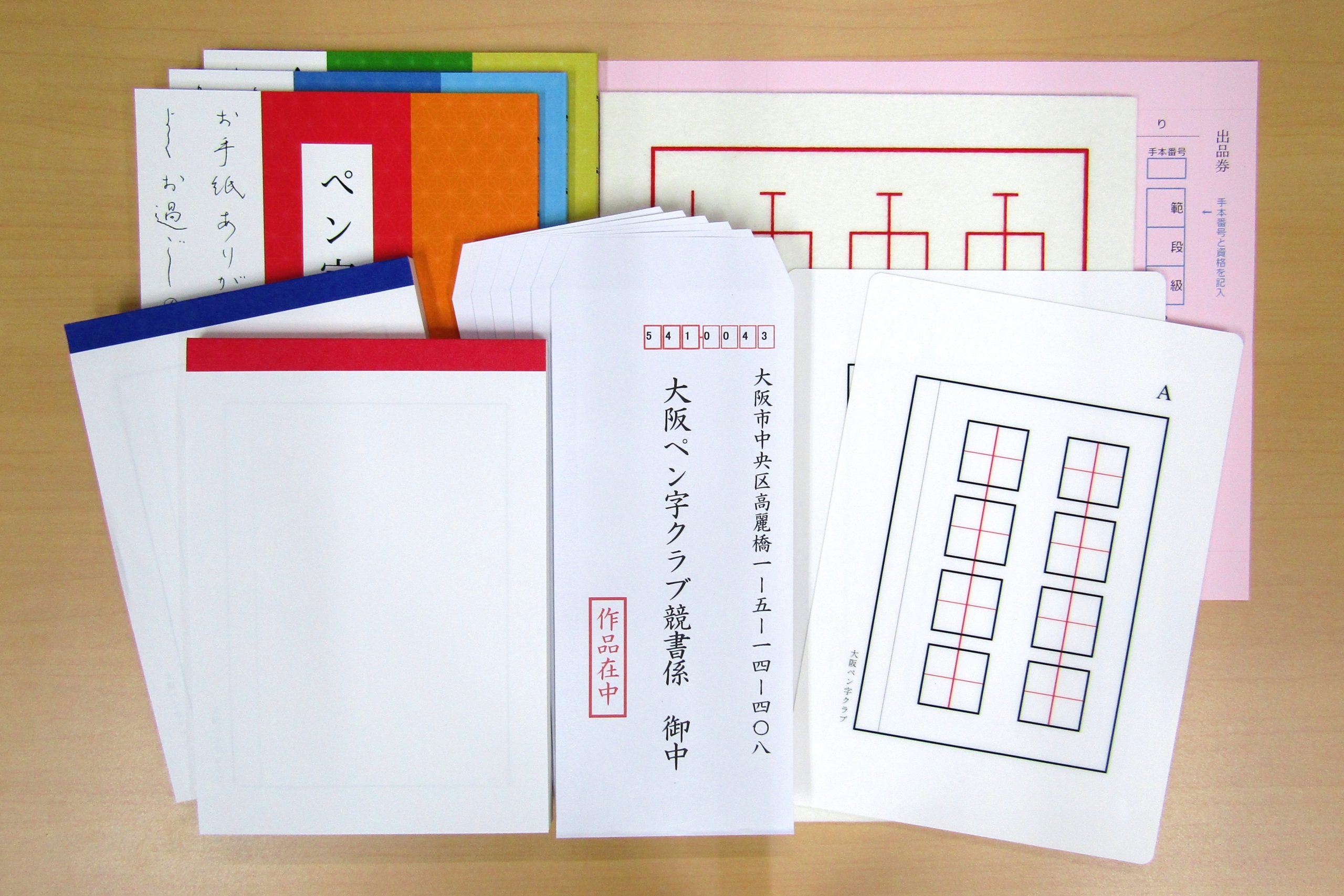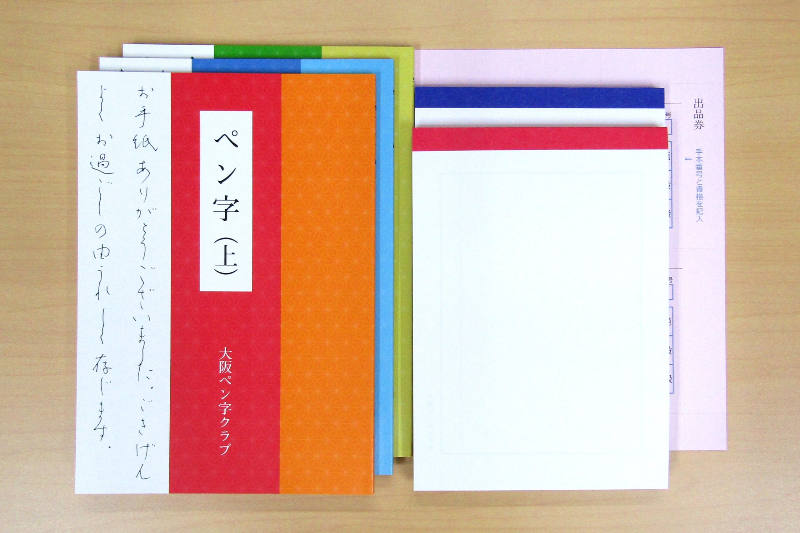 ペン字(上)1冊・毛筆細字1冊・競書用紙4冊・出品券12枚1セット・送料