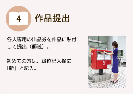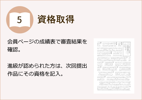 毎月1回、月末に該当課題作品1点を出品することで、資格(級位)を取得できます。