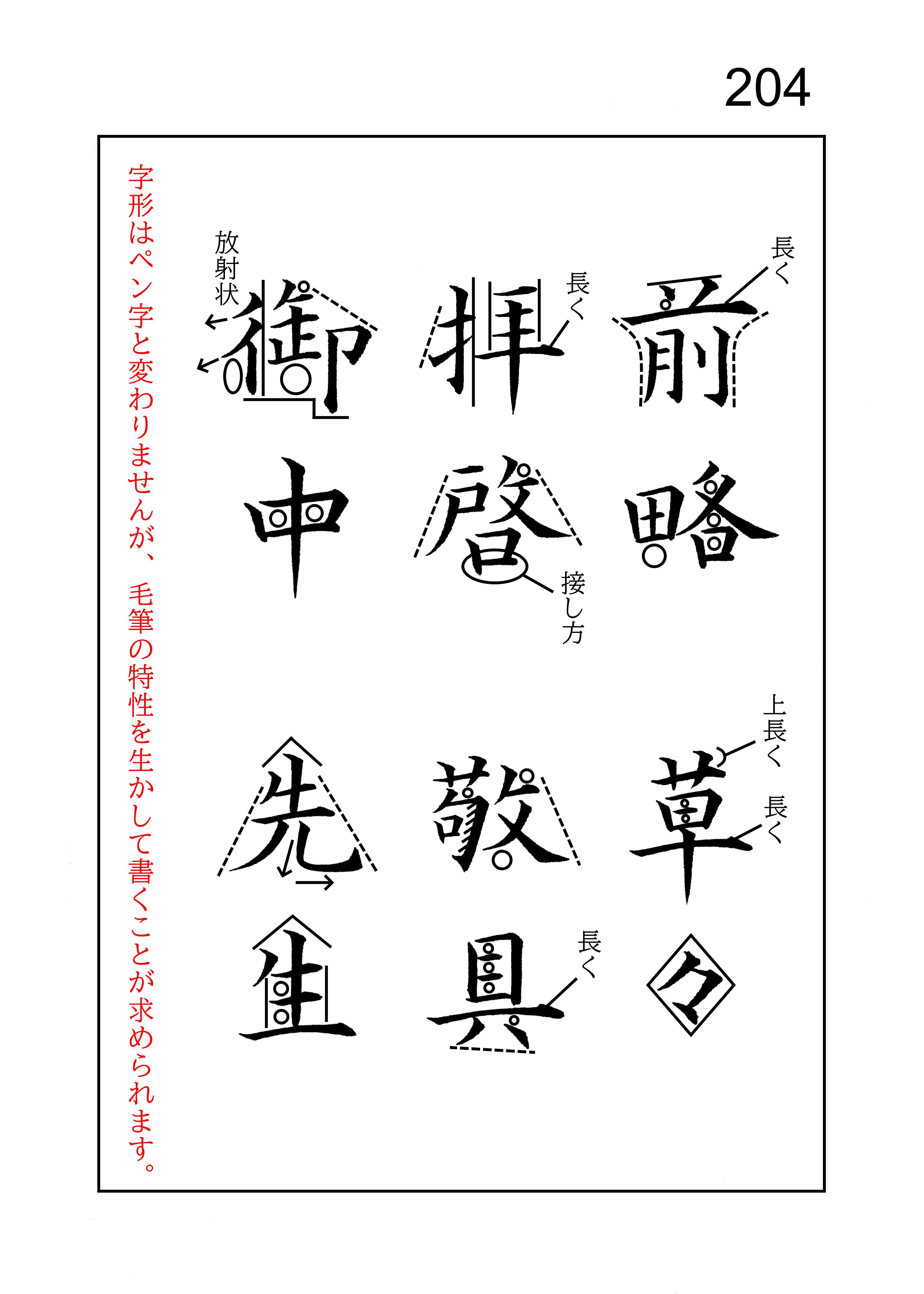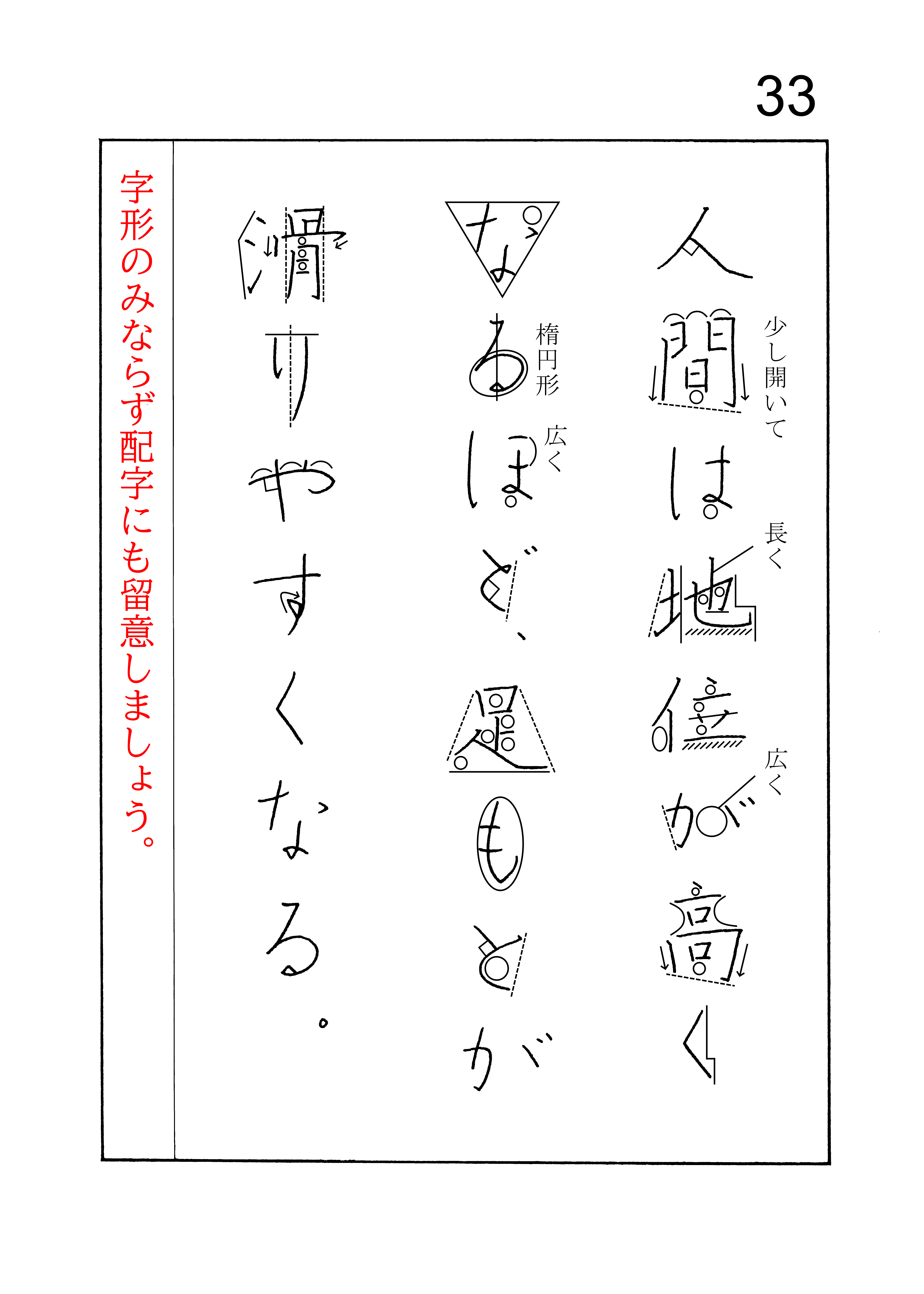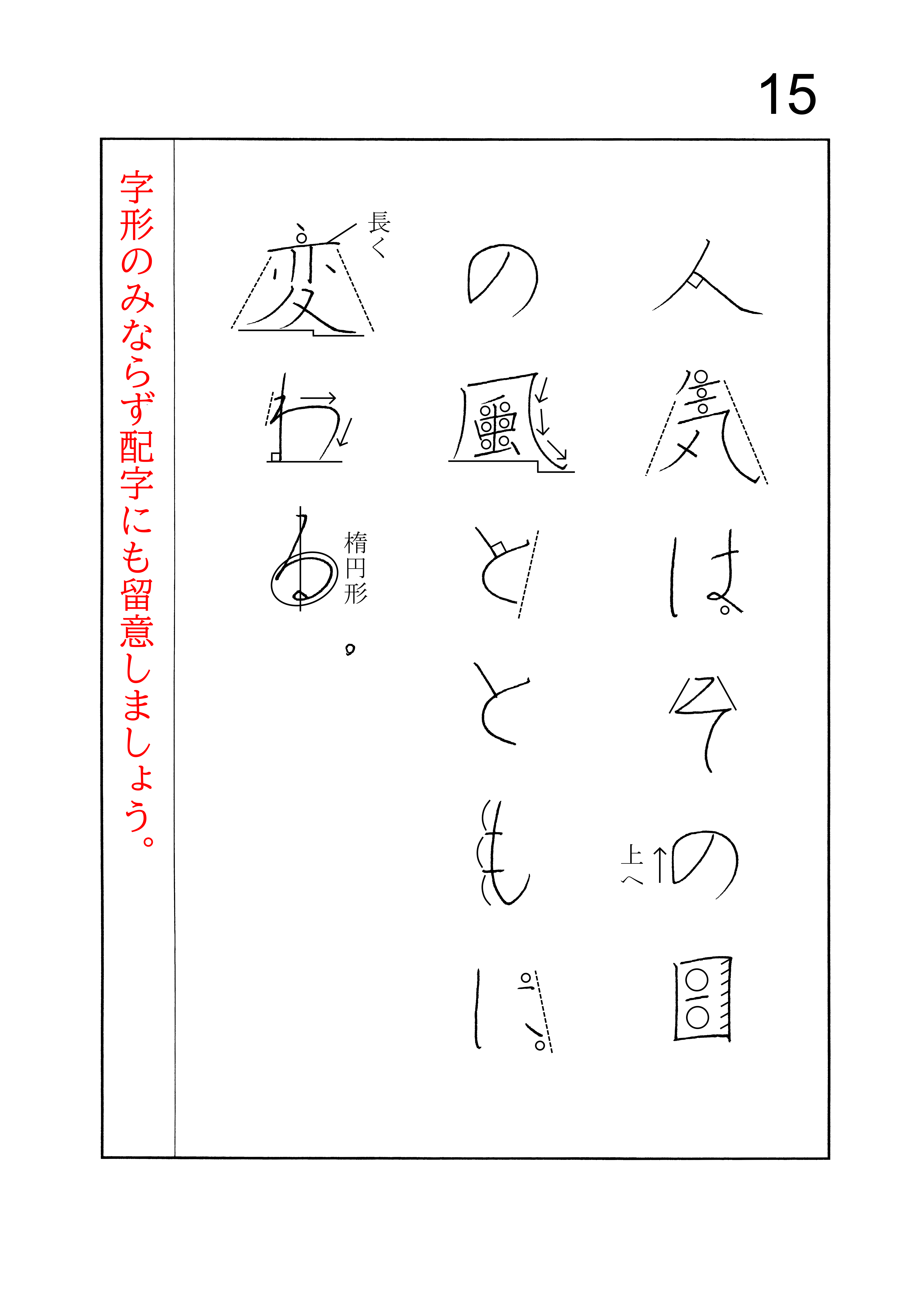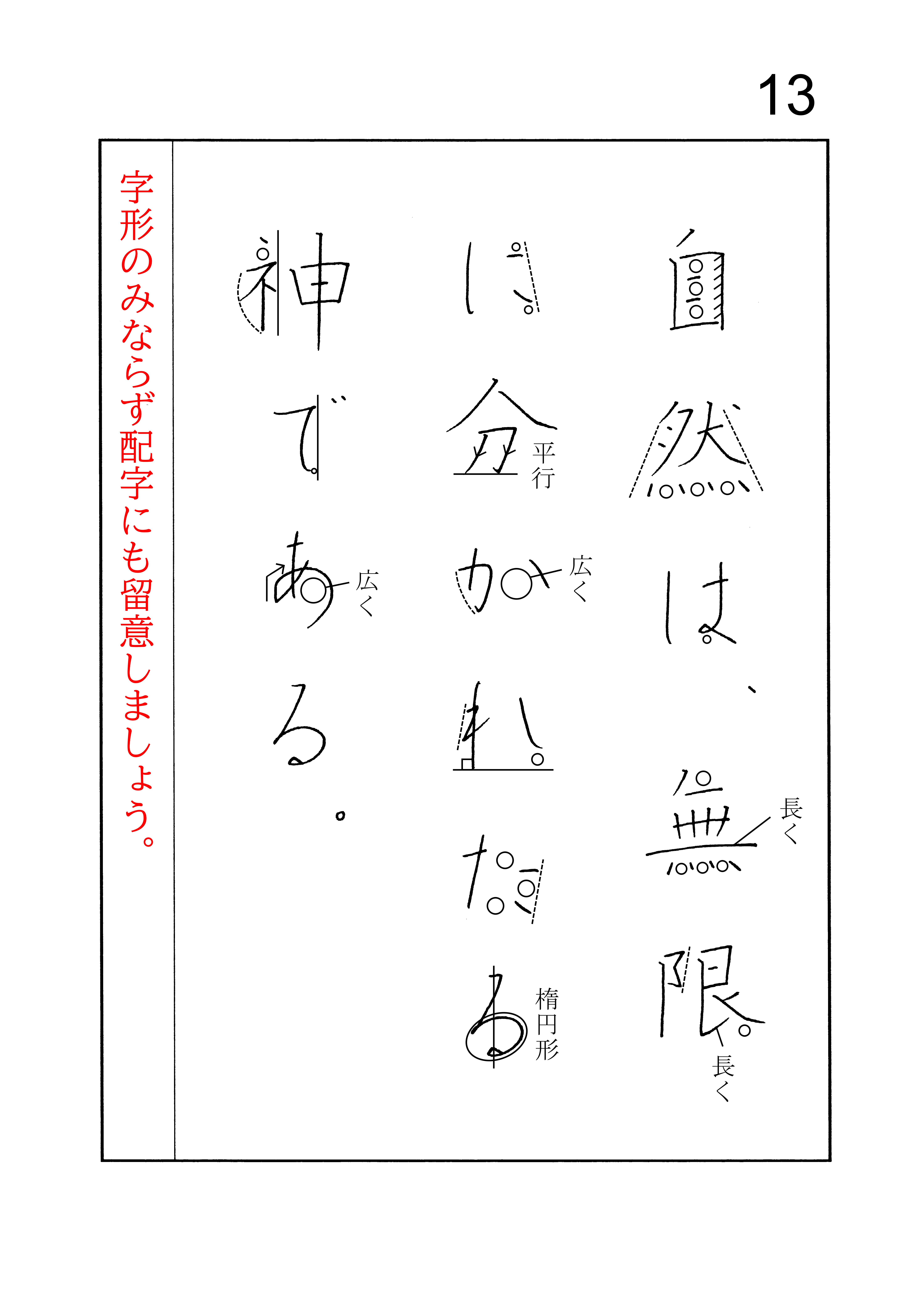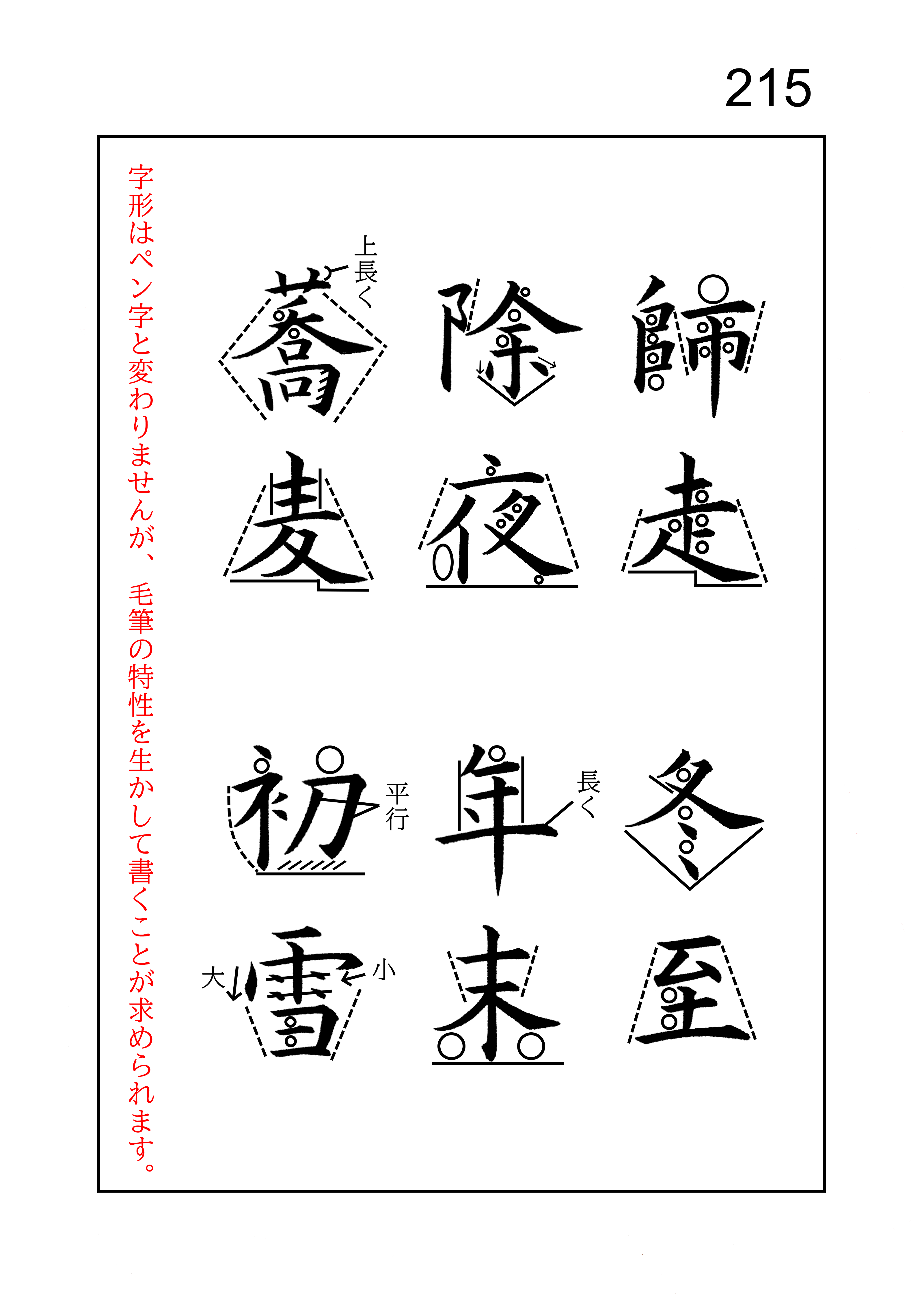 会員ページ RESULTS 審査結果 2025年12月作品審査結果 | 2026年1月15日 | 審査結果 2025年11月作品審査結果 | 2025年12月14日 | 審査結果 2025年12月号審査結果 | 2025年11月14日 | 審査結果 2025年11月号審査結果 | 2025年10月15日 | 審査結果 2025年10月号審査結果 | 2025年9月18日 | 審査結果 1 2 3 … 7 Next › EXCELLENT WORK 優秀作品 2025年12月出品優秀作品 | 2026年1月15日 | 優秀作品 2025年11月出品優秀作品 | 2025年12月15日 | 優秀作品 PROMOTION EXAM 昇格試験 昇格試験は、年2回(春・秋)実施している有料試験です。 月例競書作品審査の相対評価と違い、受験者の実力を絶対評価で認定します。 段位以上の資格取得には受験が必要ですので、ご承知おきください。 2026年前期試験要項は3月下旬に掲載 HOW TO LEARN 手本の習い方 作品評価の3大要素は、➀字形 ➁配字 ➂線質 です。 線質の向上には年月を要するため、まずは字形・配字の安定に注力してください。 配字とは、字間・行間・行の流れに留意し、紙面への収まりを良くすることです。 好印象を与えるためには、字形のみならず配字にも気を配りましょう。 初学者用の補足画像をご用意していますのでご覧ください。(1級までの手本対象) ペン字【手本番号1~38】 1 2 3 4 5 6 7 8 9 10 11 12 13 14 15 16 17 18 19 20 21 22 23 24 25 26 27 28 29 30 31 32 33 34 35 36 37 38 毛筆細字【手本番号201~224】 201 202 203 204 205 206 207 208 209 210 211 212 213 214 215 216 217 218 219 220 221 222 223 224