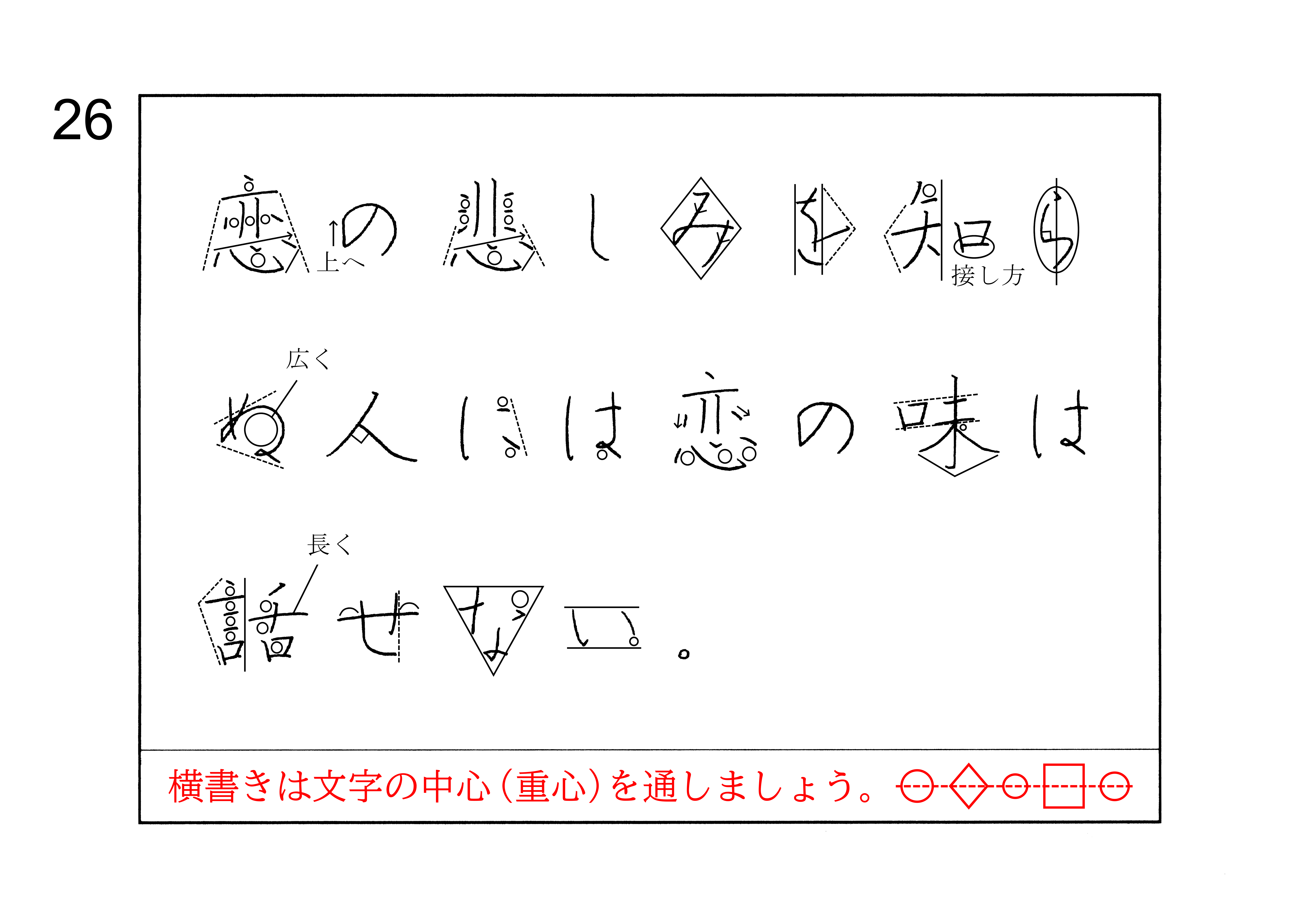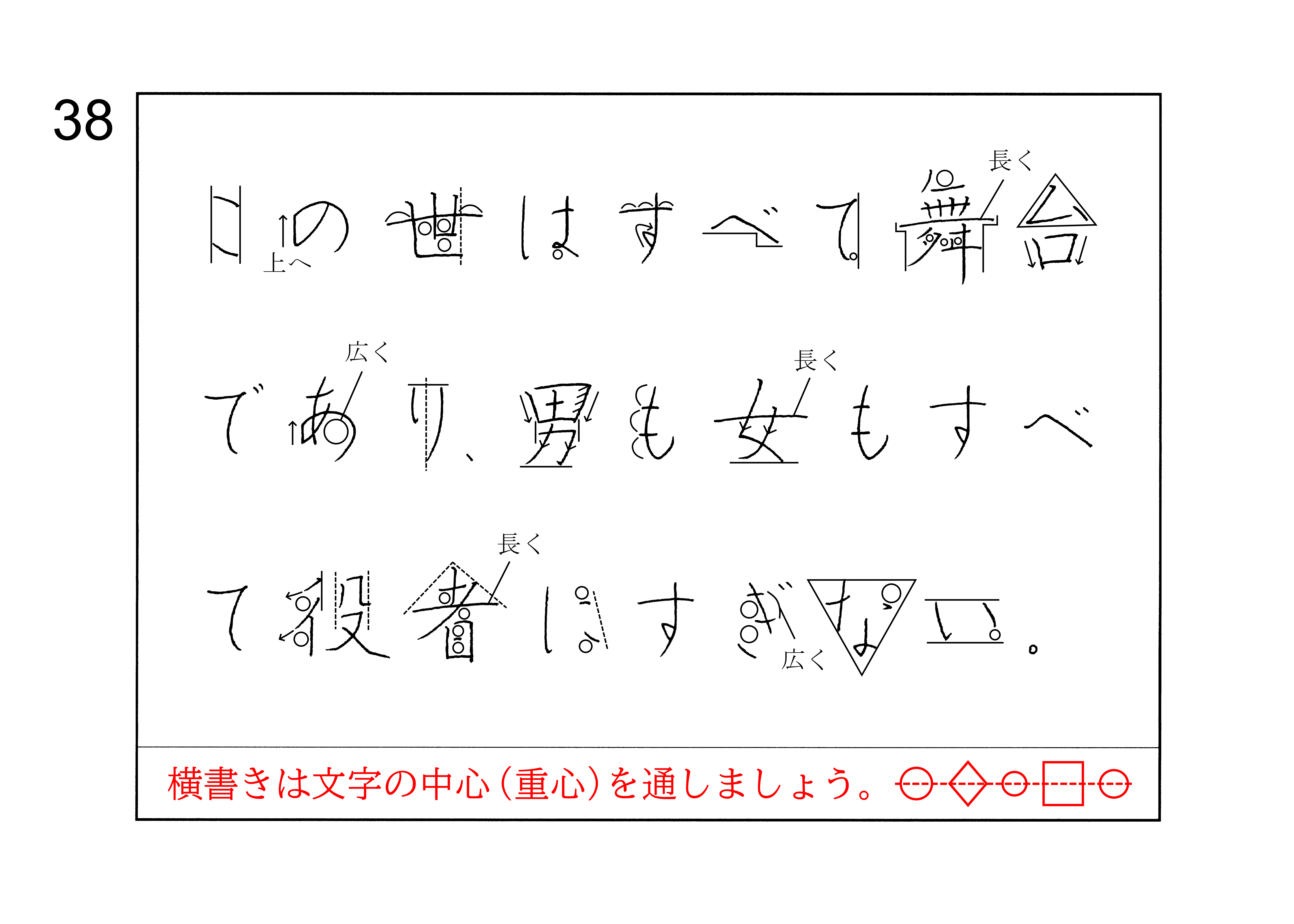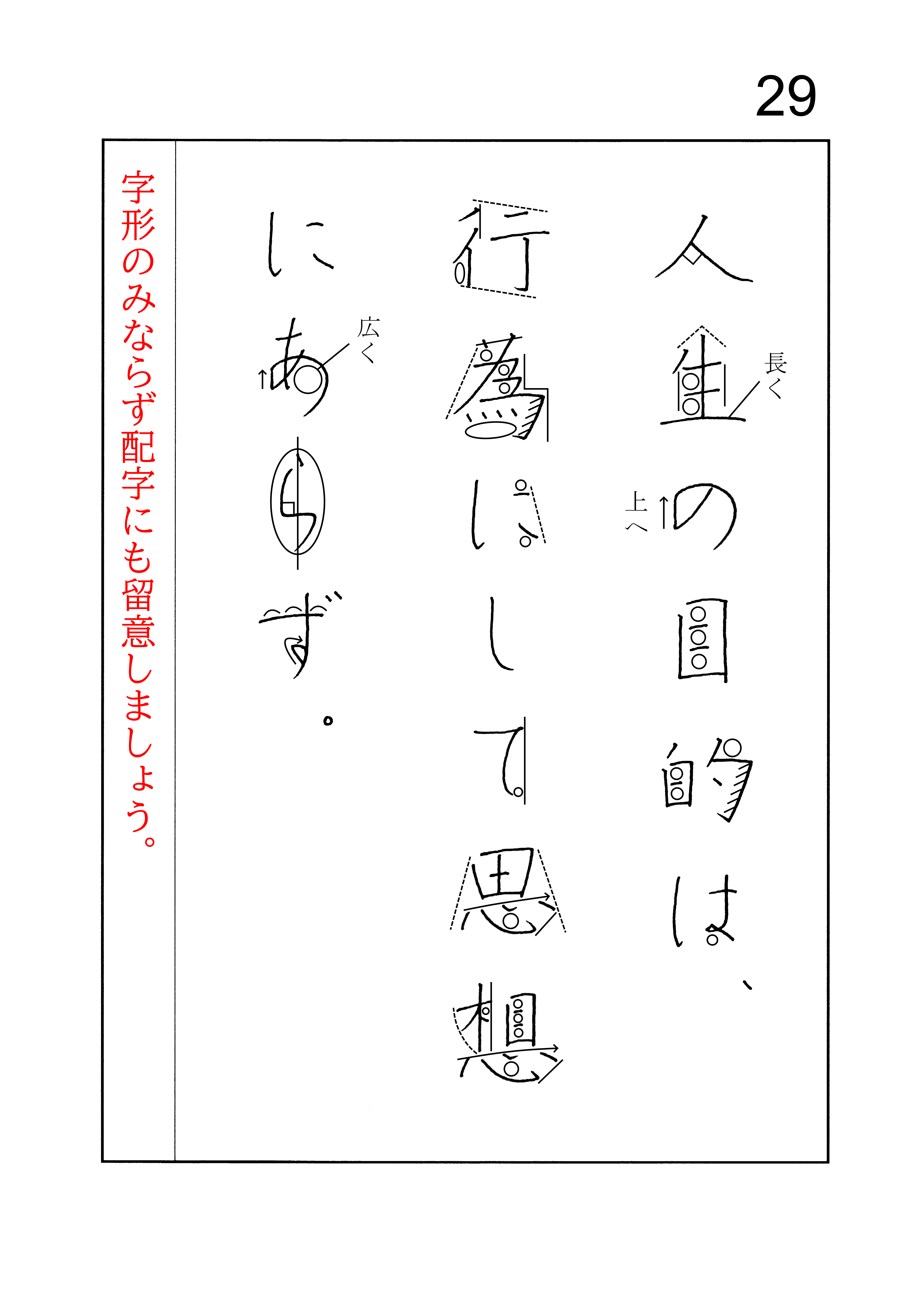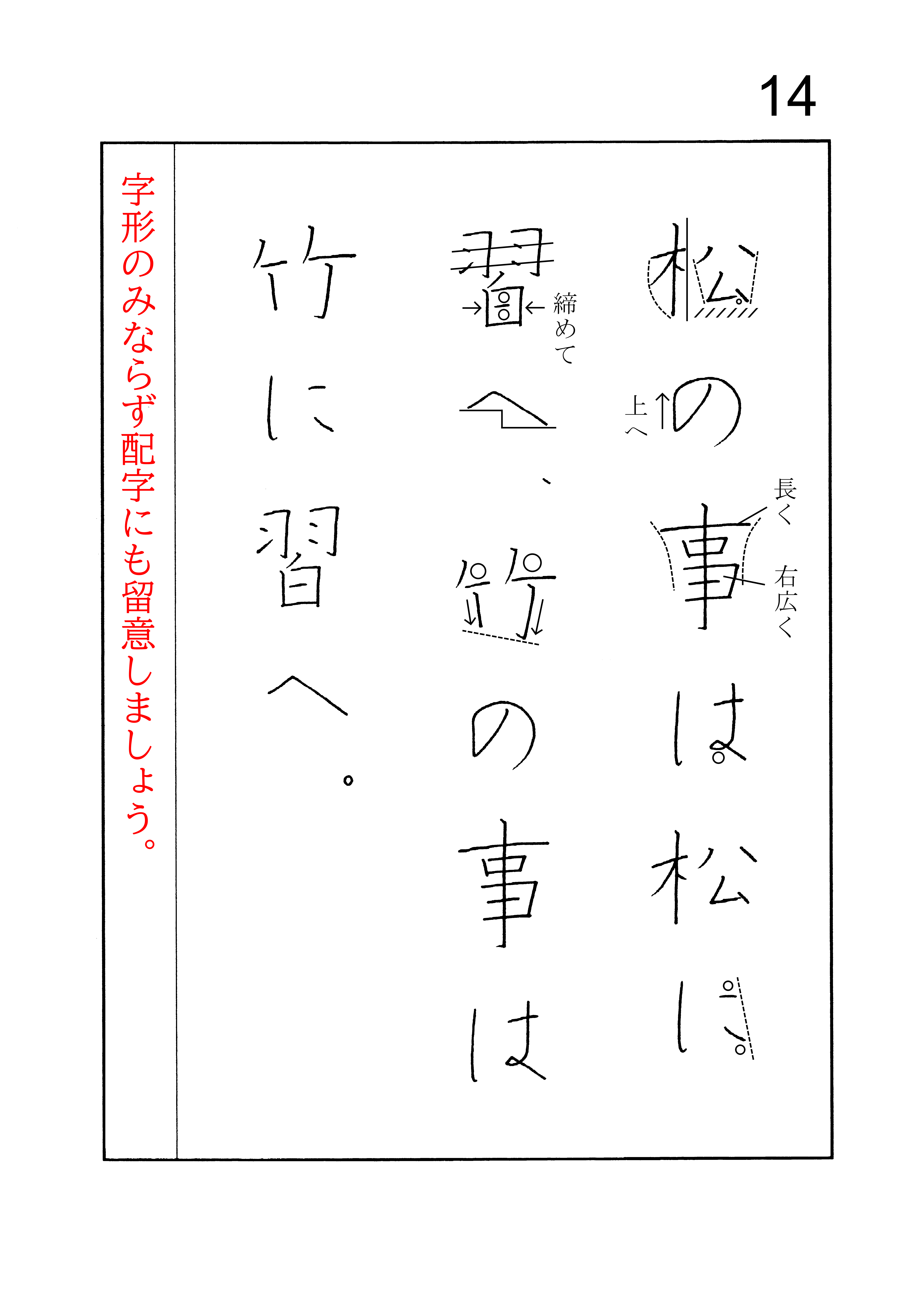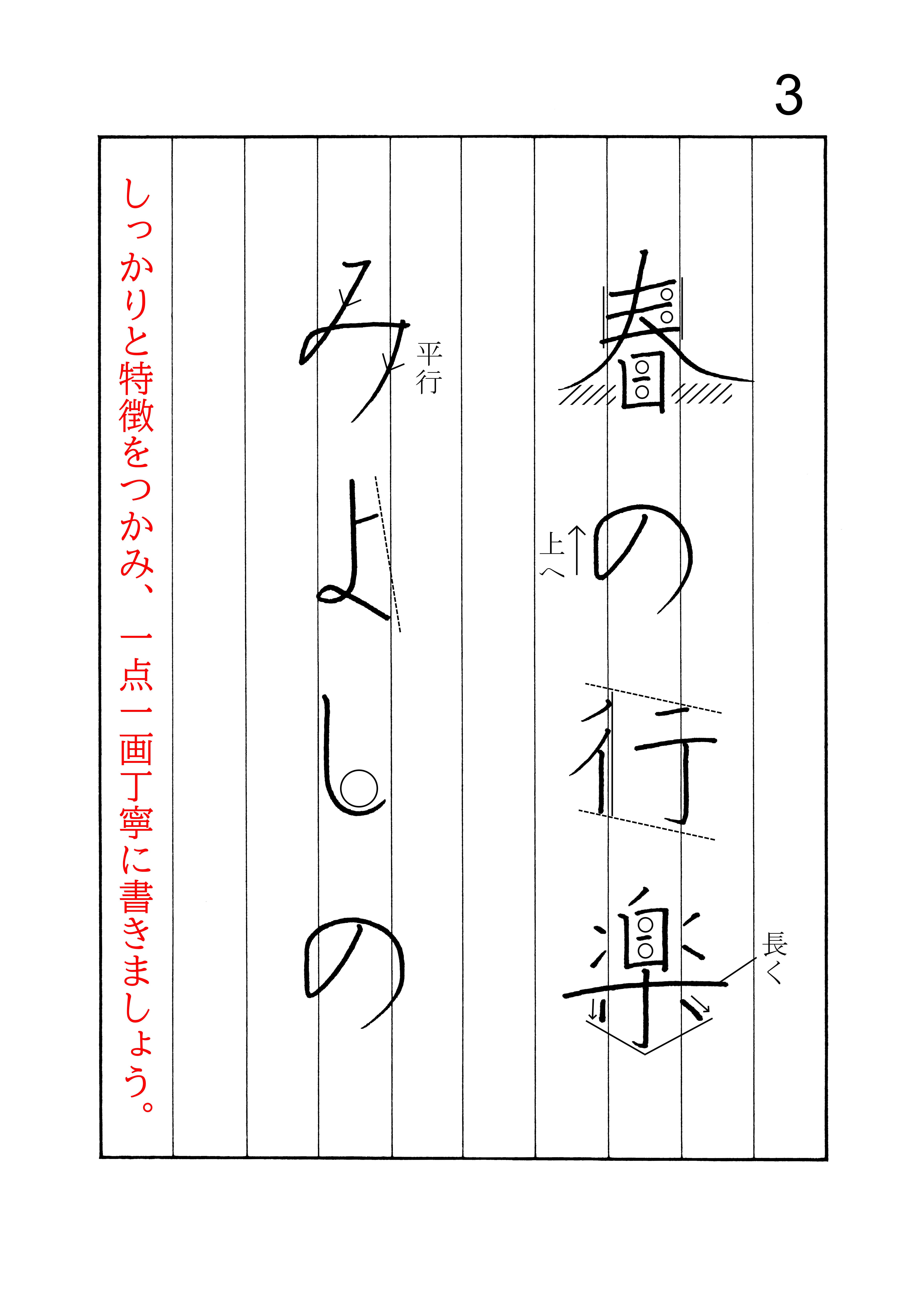 会員ページ RESULTS 審査結果 2025年12月作品審査結果 | 2026年1月15日 | 審査結果 2025年11月作品審査結果 | 2025年12月14日 | 審査結果 2025年12月号審査結果 | 2025年11月14日 | 審査結果 2025年11月号審査結果 | 2025年10月15日 | 審査結果 2025年10月号審査結果 | 2025年9月18日 | 審査結果 1 2 3 … 7 Next › EXCELLENT WORK 優秀作品 2025年12月出品優秀作品 | 2026年1月15日 | 優秀作品 2025年11月出品優秀作品 | 2025年12月15日 | 優秀作品 PROMOTION EXAM 昇格試験 昇格試験は、年2回(春・秋)実施している有料試験です。 月例競書作品審査の相対評価と違い、受験者の実力を絶対評価で認定します。 段位以上の資格取得には受験が必要ですので、ご承知おきください。 2026年前期試験要項は3月下旬に掲載 HOW TO LEARN 手本の習い方 作品評価の3大要素は、➀字形 ➁配字 ➂線質 です。 線質の向上には年月を要するため、まずは字形・配字の安定に注力してください。 配字とは、字間・行間・行の流れに留意し、紙面への収まりを良くすることです。 好印象を与えるためには、字形のみならず配字にも気を配りましょう。 初学者用の補足画像をご用意していますのでご覧ください。(1級までの手本対象) ペン字【手本番号1~38】 1 2 3 4 5 6 7 8 9 10 11 12 13 14 15 16 17 18 19 20 21 22 23 24 25 26 27 28 29 30 31 32 33 34 35 36 37 38 毛筆細字【手本番号201~224】 201 202 203 204 205 206 207 208 209 210 211 212 213 214 215 216 217 218 219 220 221 222 223 224